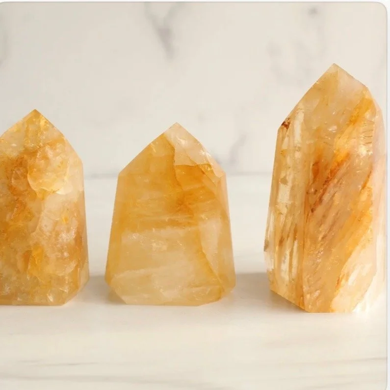 This crystal forms when Clear Quartz encases already existing shimmering golden strands of titanium. This crystal reminds us to never give up hope.