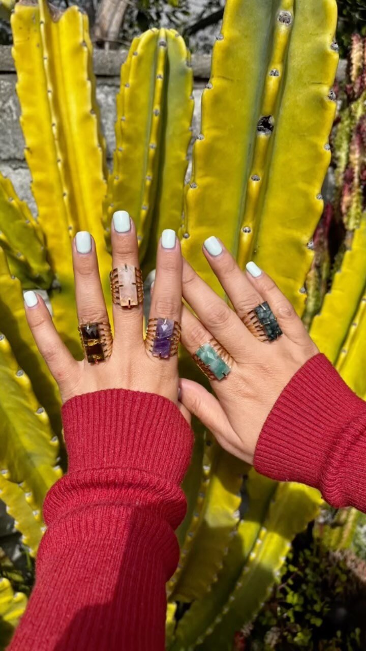 Amanda Diazβs journey with stones started at seventeen, when she learned wire-wrapping techniques and began designing pieces inspired by the natural world around her.
