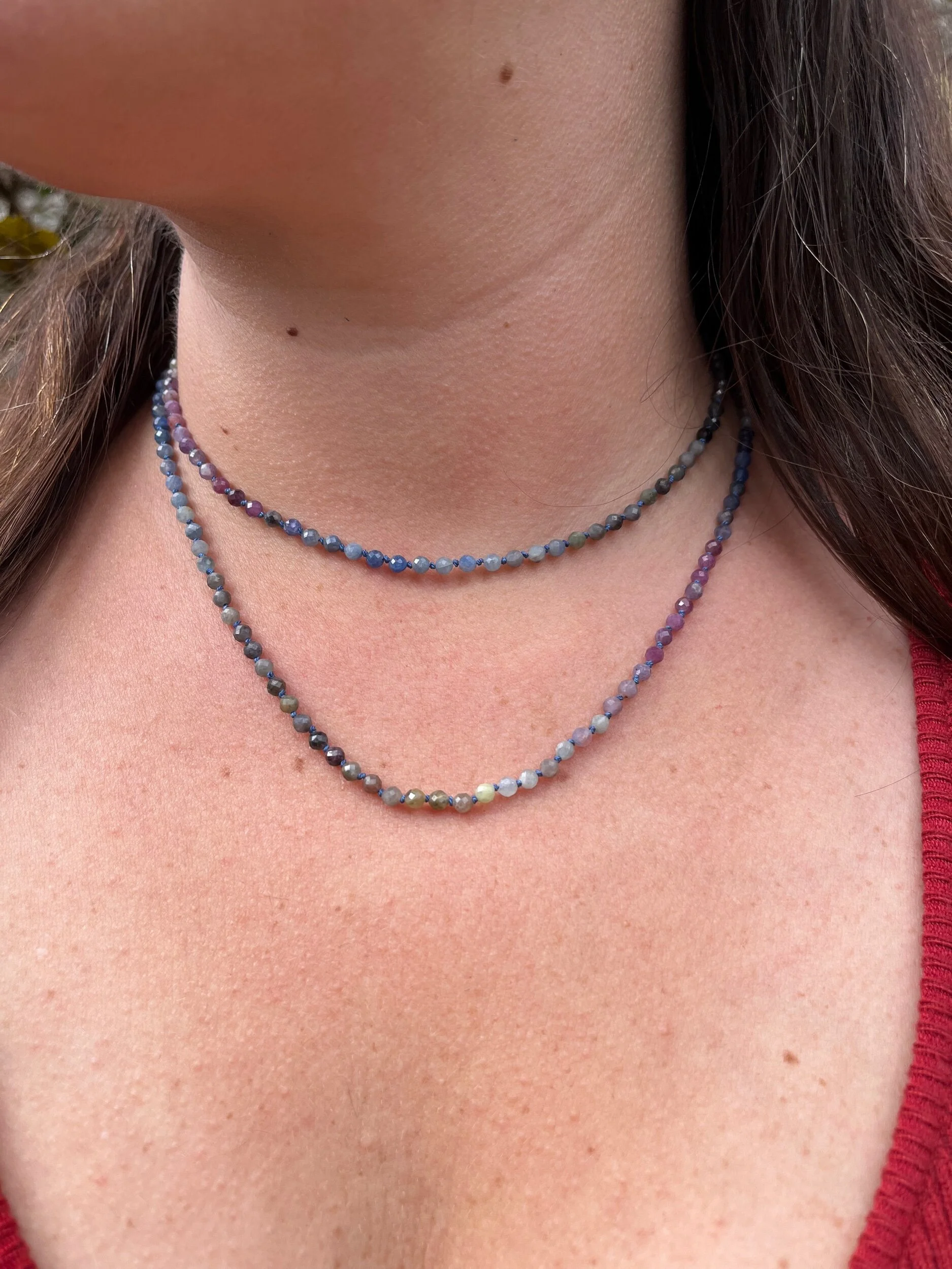 Strung on beading wire with gold filled findings. Fresh water pearls and Ethiopian opals measure 17 inches long. Super cute to add a pop of color to any outfit!
