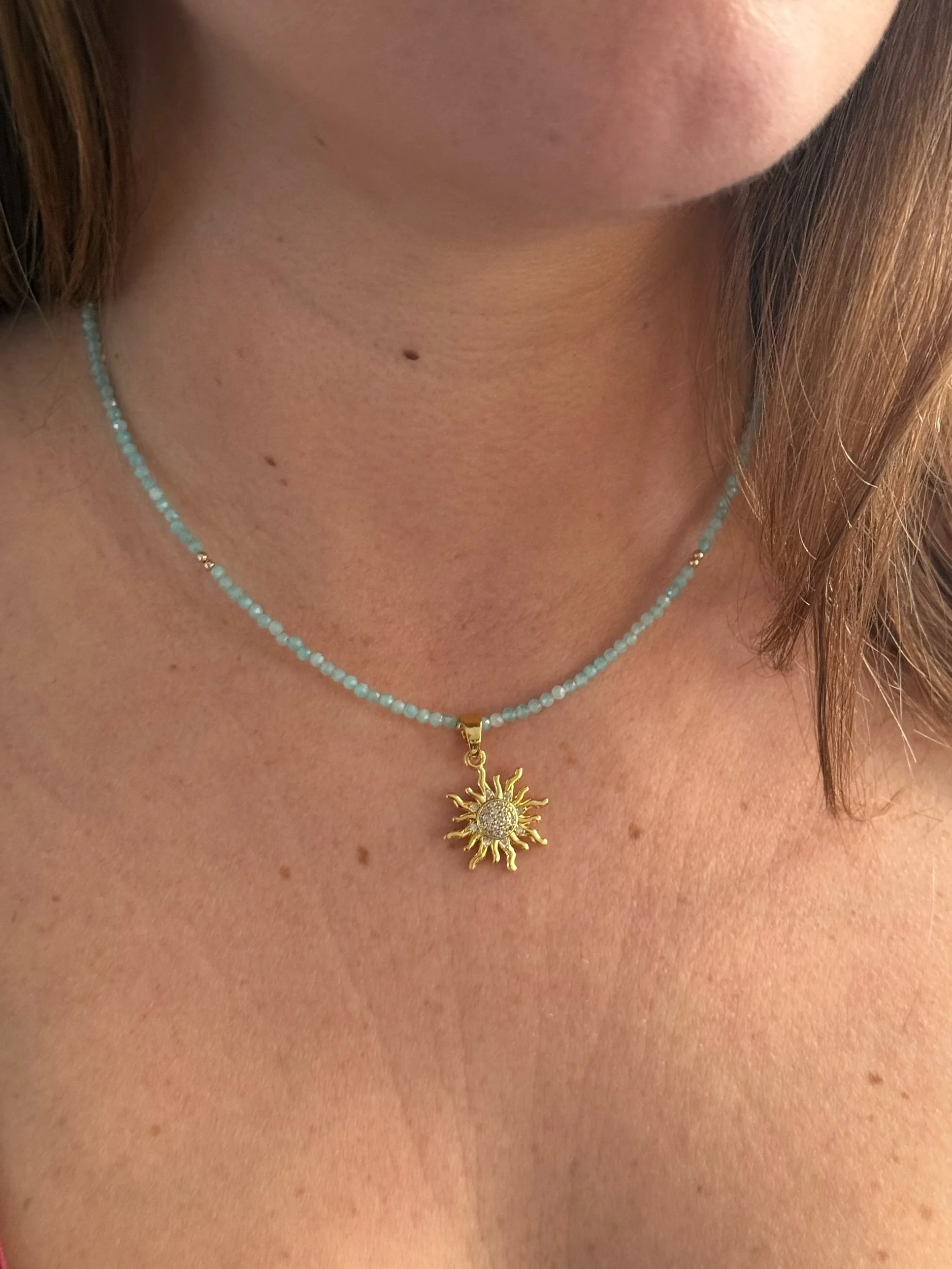 17 inches of gold filled box chain with gold filled spring clasp. Triangle shape green Strawberry Quartz pendant measures 24x13mm