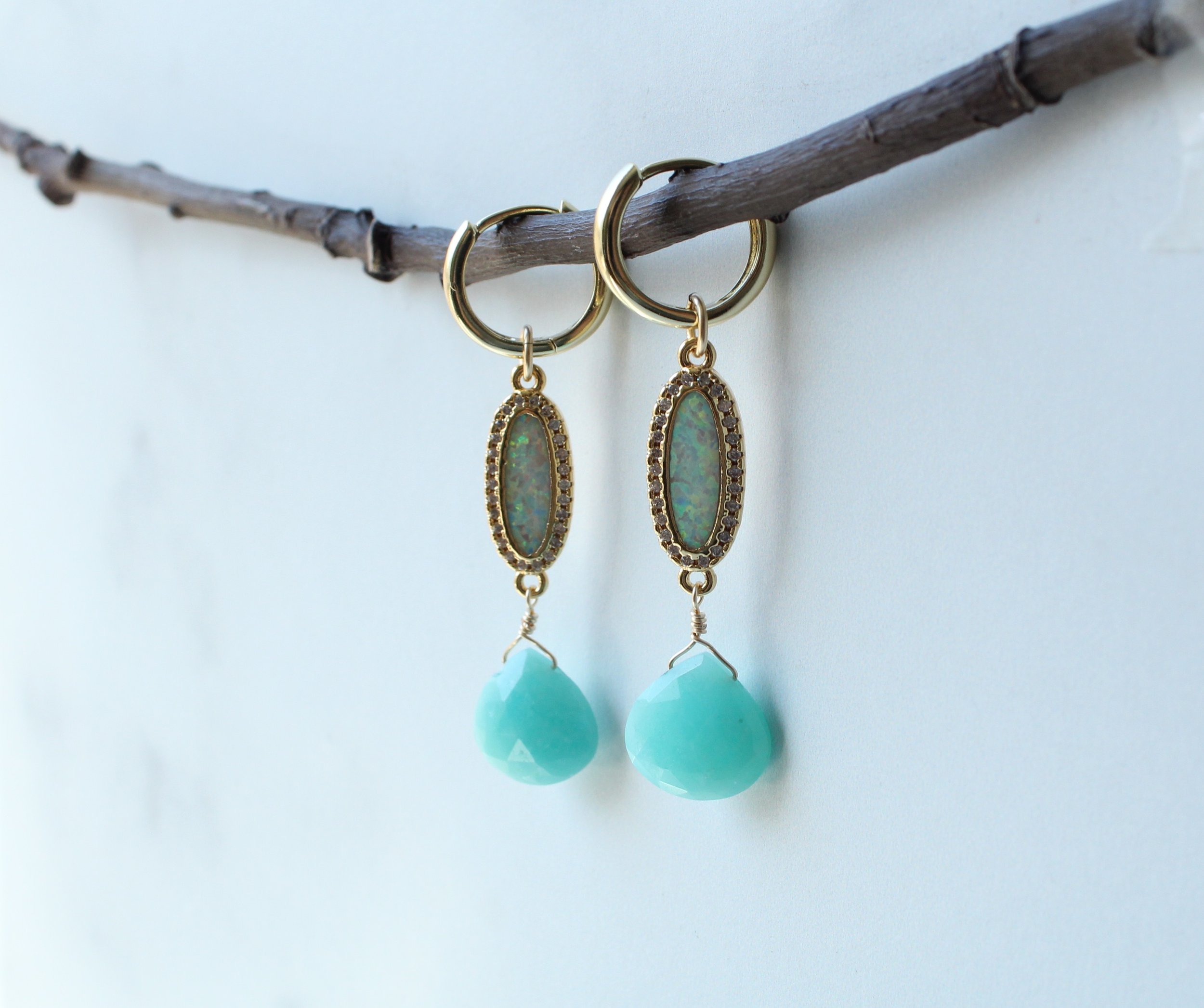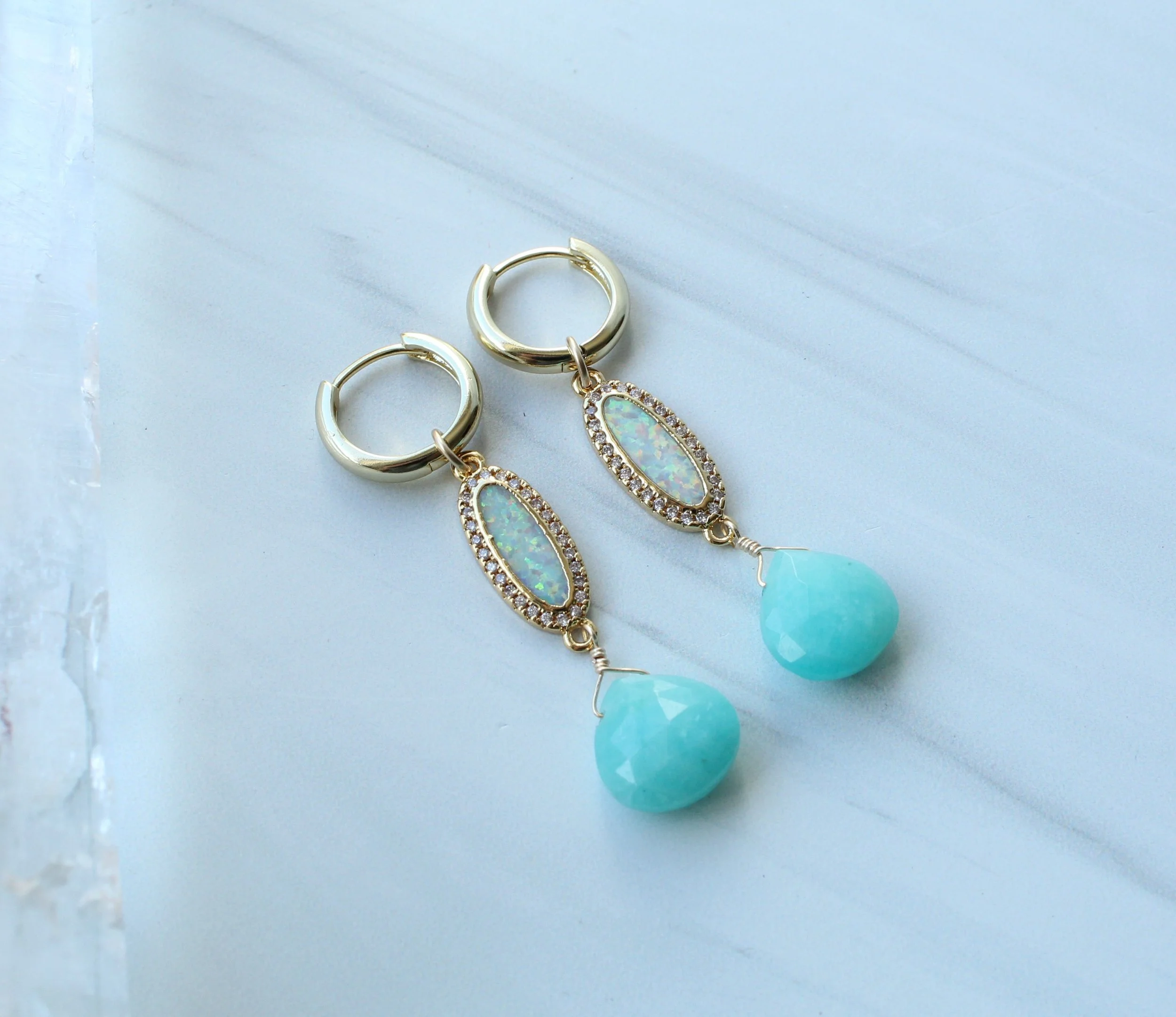 Faceted Labradorite post earring with 5 bezeled Moonstone dropping down. Dangle 3 inches, Moonstone measure 7mm, Labradorite measures 9mm